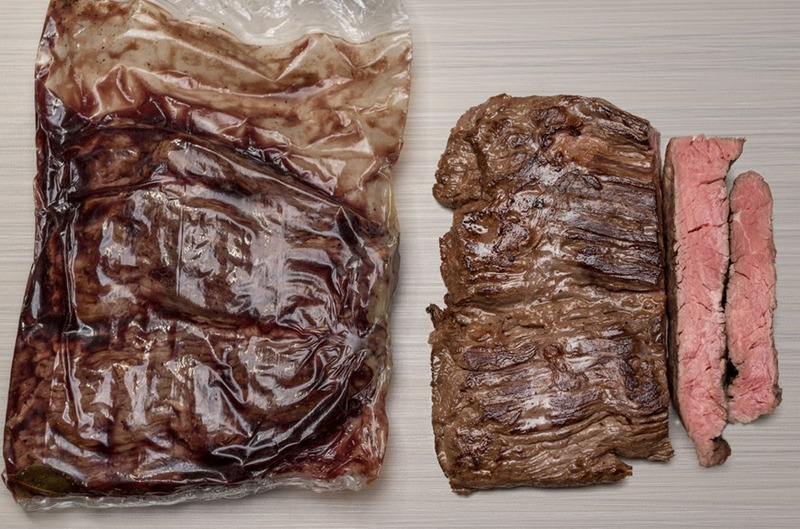 SV003 BAVETTE DE BOEUF (portion 170G) 12 unités/boîte (3x4) Poids unitaire approx. 170 gr Cuisson sous-vide saignante Griller 1 minute de chaque côté